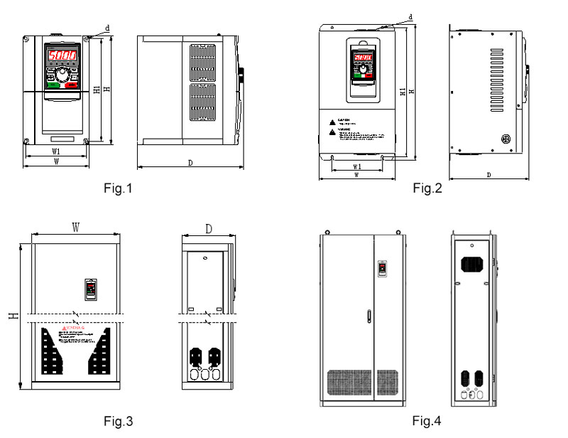 变频器的外形尺寸与安装尺寸 (单位:mm)