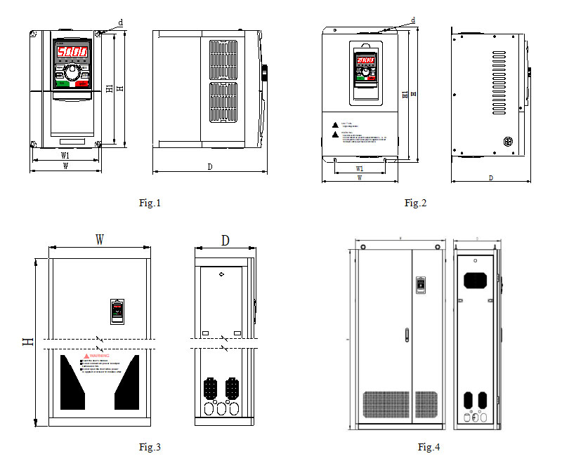 | ZVF300S-G160/P185T4M | 160/185kW | 300/340A | 1100 | — | 460 | — | 330 | 柜式 | Fig.3 |