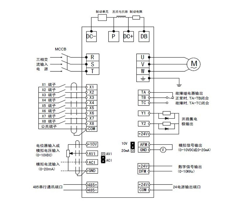 标准: 6 个数字输入端子,其中1 个支持最高100kHz 的高速脉冲输入 2 个模拟量输入端子,1 个仅支持0 ~ 10V 和-10V ~ 10V电压输入, 1 个支持0 ~ 10V和-10V ~ 10V 电压输入或0 ~ 20mA和-20~ 20mA 电流输入 |