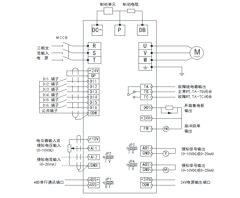 4、NPN和PNP两种制式的多功能输入端子,可与任何外部设备提供兼容开关量信号。