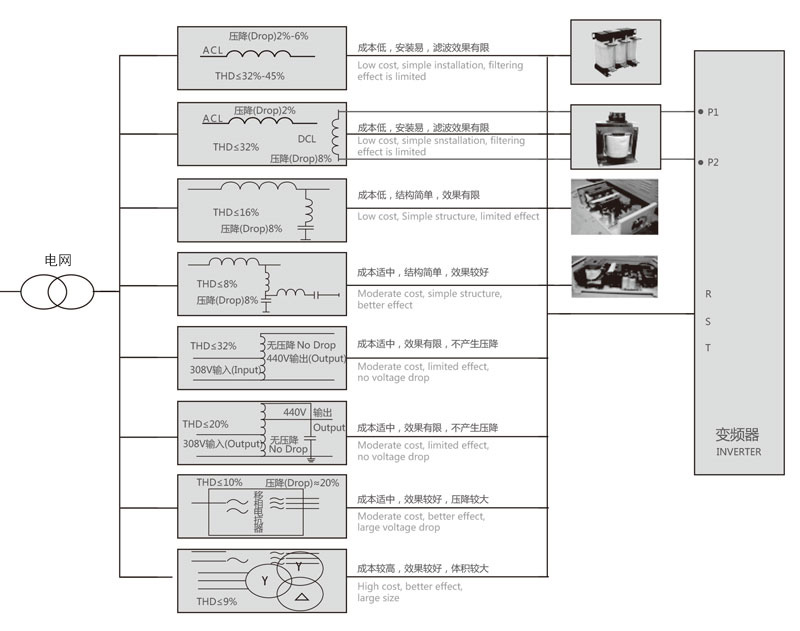交流输入电抗器:采用了高性能的箔式绕组结构,具有直流电阻小,抗短路能力强,短时间过载能力强;采用高性能的F级以上的复合绝缘材料,使产品在严酷的工作条件下依然可以保持可靠的性能;电抗器设计磁通密度低,线性度好,过载能力强,配合真空压力浸渍工艺电抗器噪音小;铁芯采用优质低损耗冷轧取向硅钢片,电抗器损耗小,效率高,温升低。