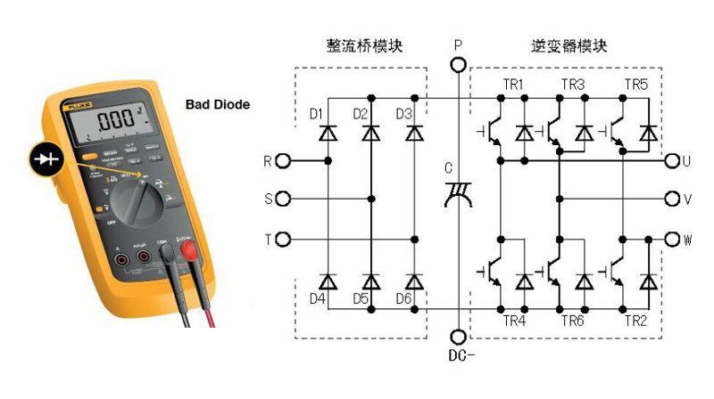 注:1、测量时必须确认平波电容放电以后才能进行。