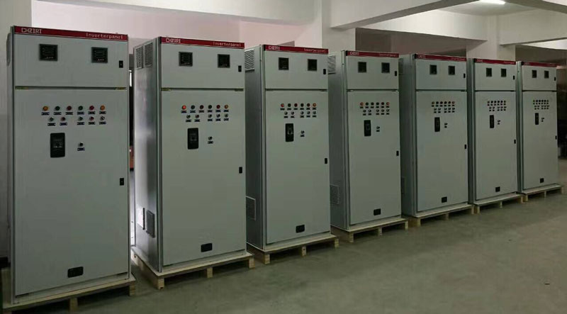 变频器柜根据用途的不同和功能的各异其差别也很大,根据工况需要可在变频柜内安装交流输入电抗器,输出电抗器,直流电抗器及EMI滤波器,制动单元,制动电阻,接触器,中间继电器,热继电器,可编程控制器(PLC),可编程操作终端(GOT),电度表,散热风扇等,根据系统工况在变频柜面板上设置多种控制按钮和指示灯如正转、反转、电机增速、电机减速、点动正转、点动反转、手动/自动、紧急停止、变频/工频、PLC控制,触摸屏等。