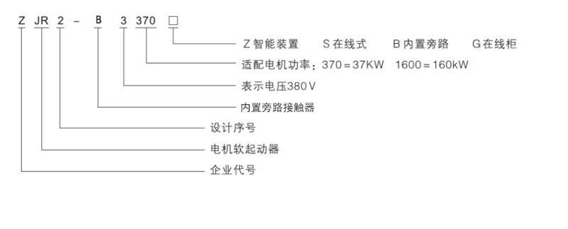 ZJR2-B 系列的软启动内置接触器,适用于交流380V /50/60Hz,额定电流1200A及以下的三相交流鼠笼型异步电动机, 本软启动为内置接触器型。