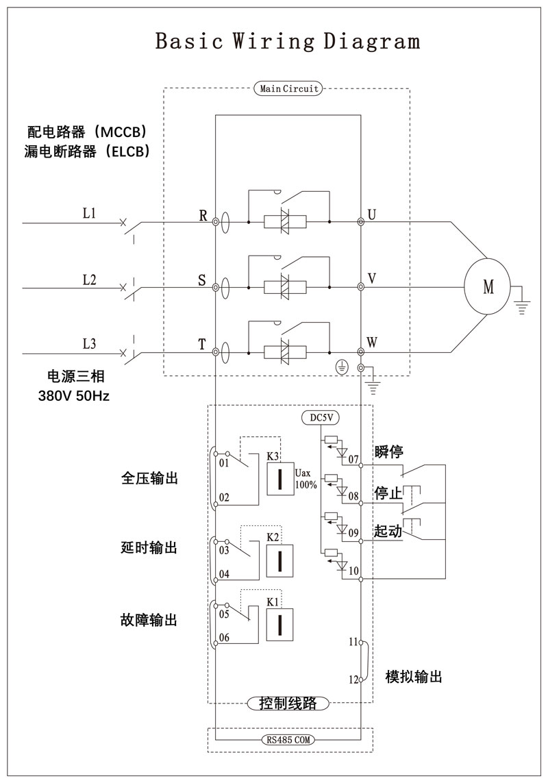 注意:标准软启动器不带RS485接口。如果您需要带RS485接口的软启动,请在下单时告知我们。