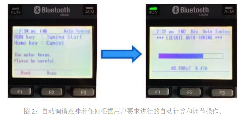 一旦用户输入了相关的电机信息,变频器就会提示用户开始自动调谐过程,在此期间,变频器会运行并测试电机,计算出铭牌上不容易找到的电机规格。