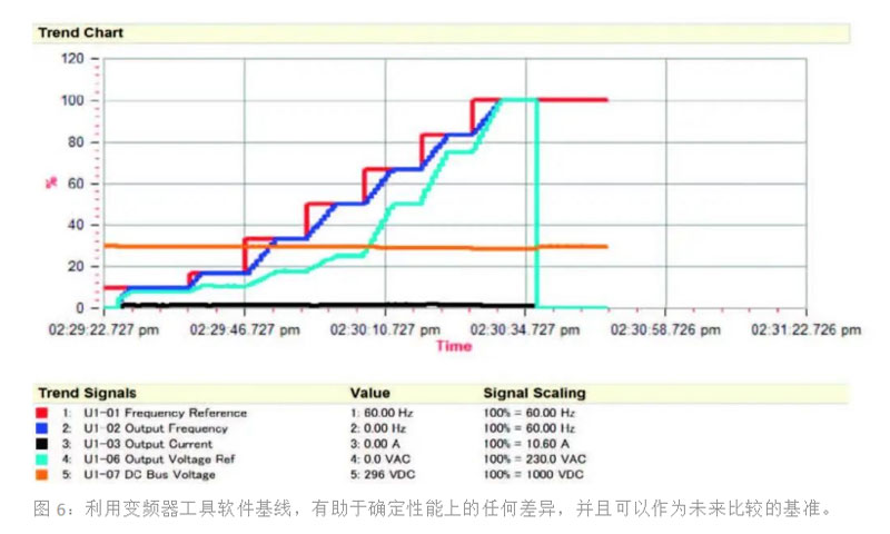 5. 另外一种比较调节前后性能的方法,是通过免费的趋势分析软件,很多制造商都提供这种变频器工具软件包。这些基线有助于发现性能上的任何差异,可以作为未来比较的基准。